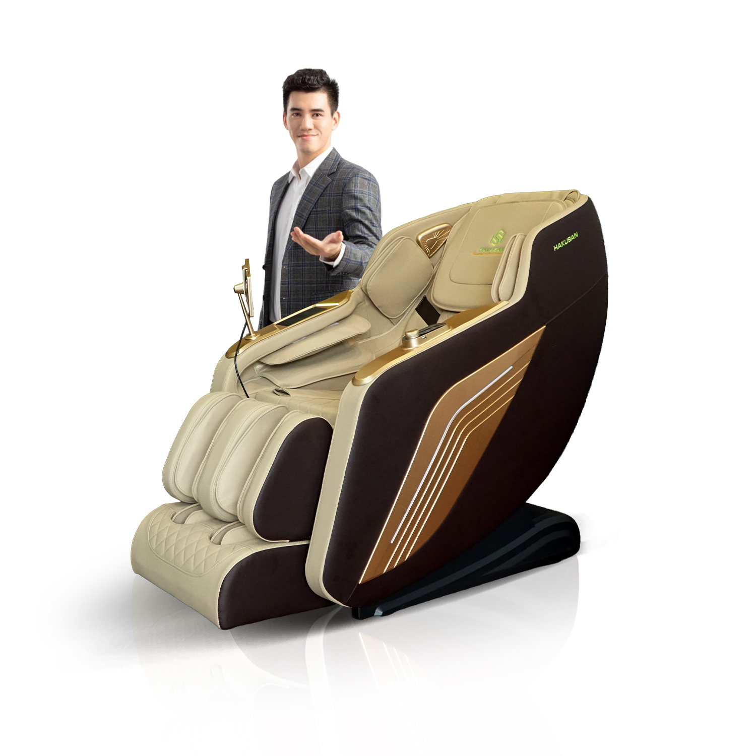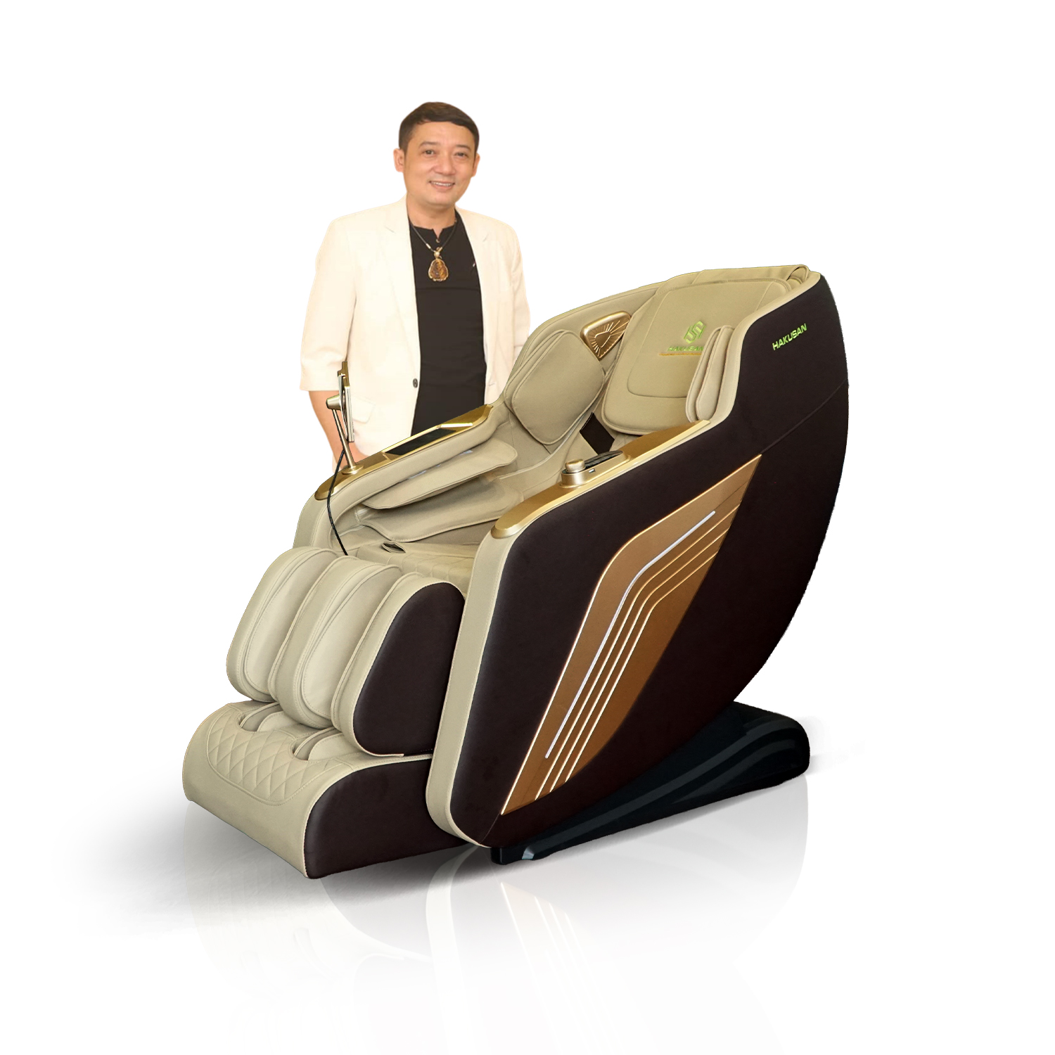 Ghế Massage Toàn Thân 3D Hakusan JP A3 Màu Kem